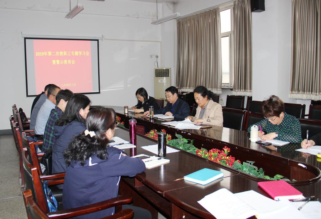 4月8日下午,我们在07509召开2019年第二次教职工专题学习会暨警示教育会。在校院领导和教职工参加了会议,院党委书记吴文国主持会议。