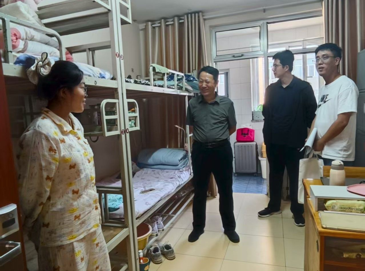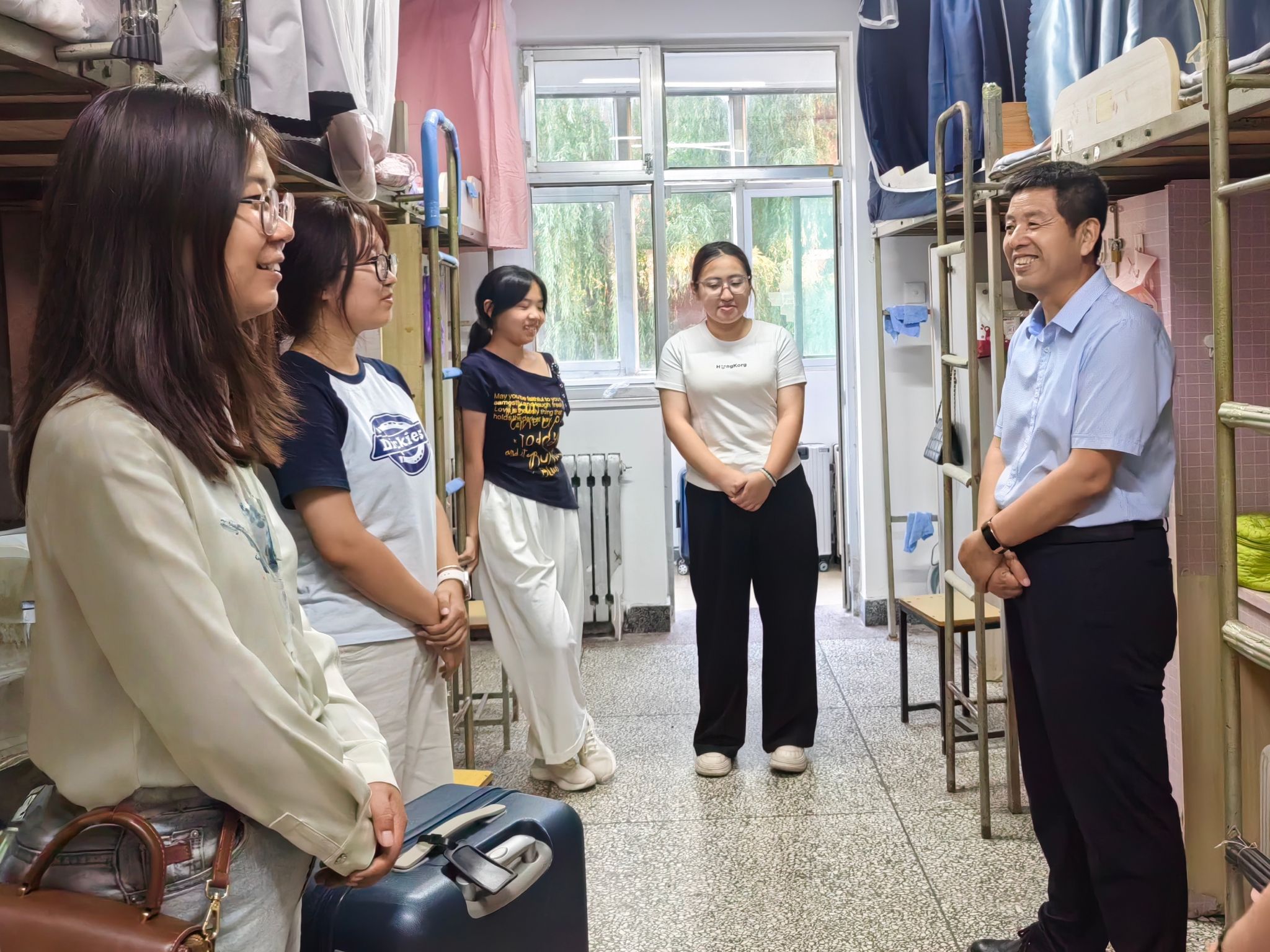 9月6日,新生报到当天,院党委书记闫建璋、院长赵英、院党委副书记高霞、副院长刘岗及新生辅导员一行深入2025级本科生和研究生宿舍,为新生们送去了温暖与关爱。