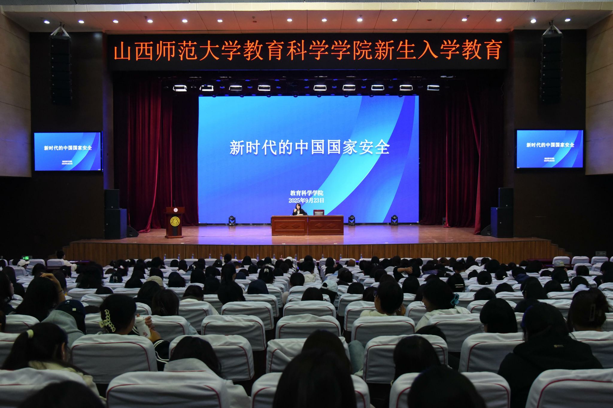 为进一步落实《山西省教育厅关于进一步推进总体国家安全观宣传教育工作的通知》要求,切实提升大学生国家安全意识,强化国家安全知识学习,增强国家安全责任感,牢固树立总体国家安全观,9月23日下午,我们在科学会堂报告厅举办了《新时代的中国国家安全》白皮书专题宣讲活动,2025级全体新生聆听了报告。宣讲由院党委副书记高霞主讲。
