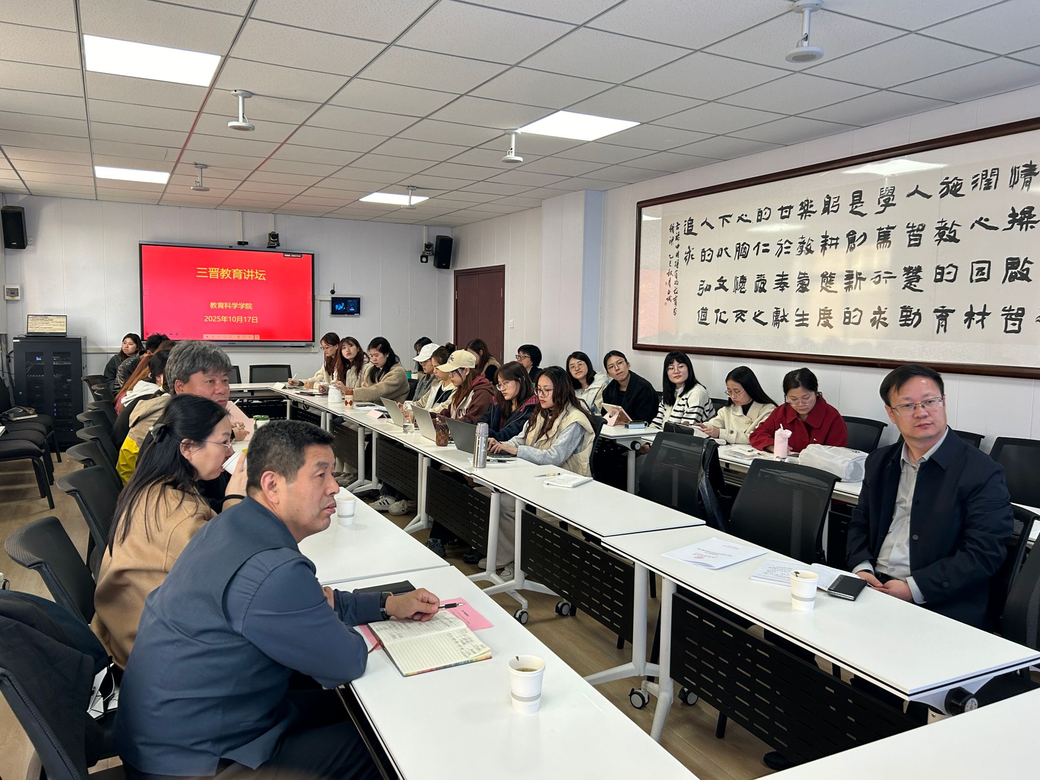 2025年10月17日,我们在南区8号教学楼212多功能室举办第四十三期“三晋教育讲坛”。本次讲坛特邀东北师范大学李广教授担任主讲嘉宾,院党委书记闫建璋教授主持报告会,学院部分教师及研究生共计30余人参与了此次学术活动。